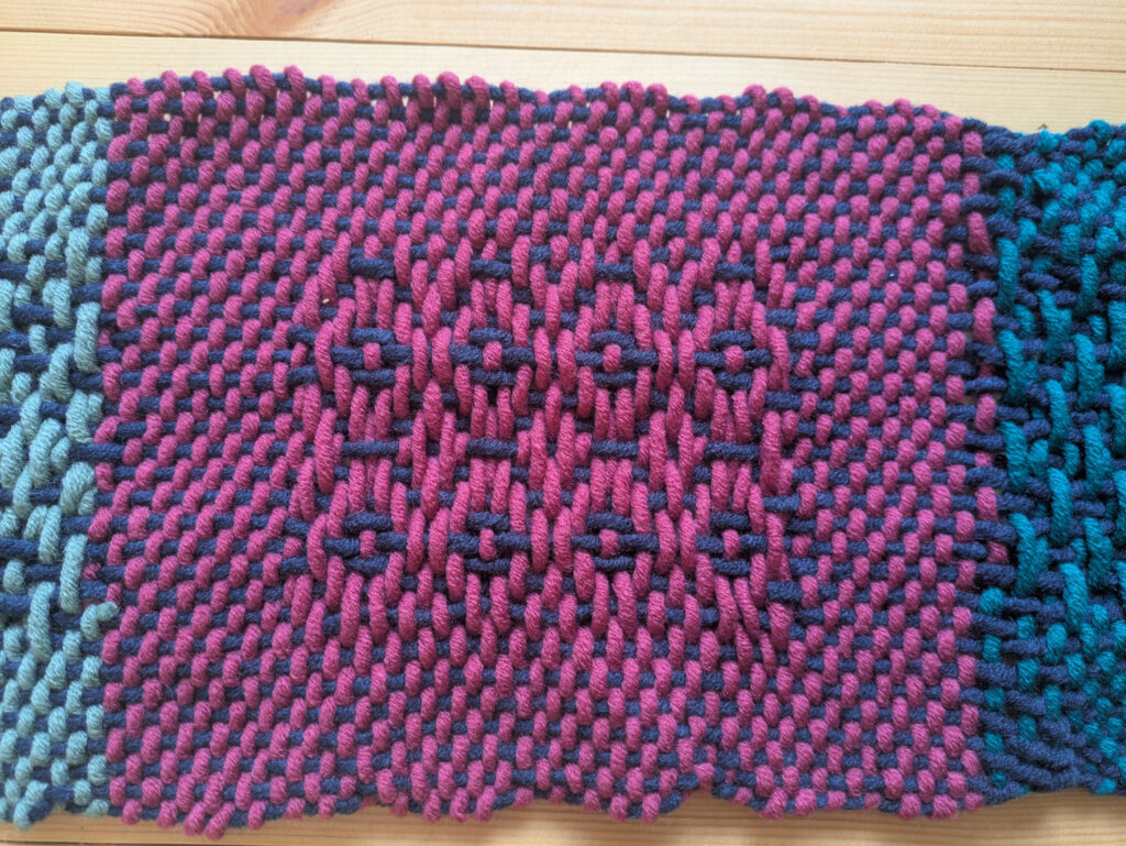 The loom behaved itself perfectly. It probably wove the best scarf it’s ever done! It still had yarn left in the bobbin frame at the end of the day, so I wasn’t able to finish the scarf during the show. I think that’s down to me starting the loom at 11am. I know that a 9am-5pm show will result in a completed scarf.